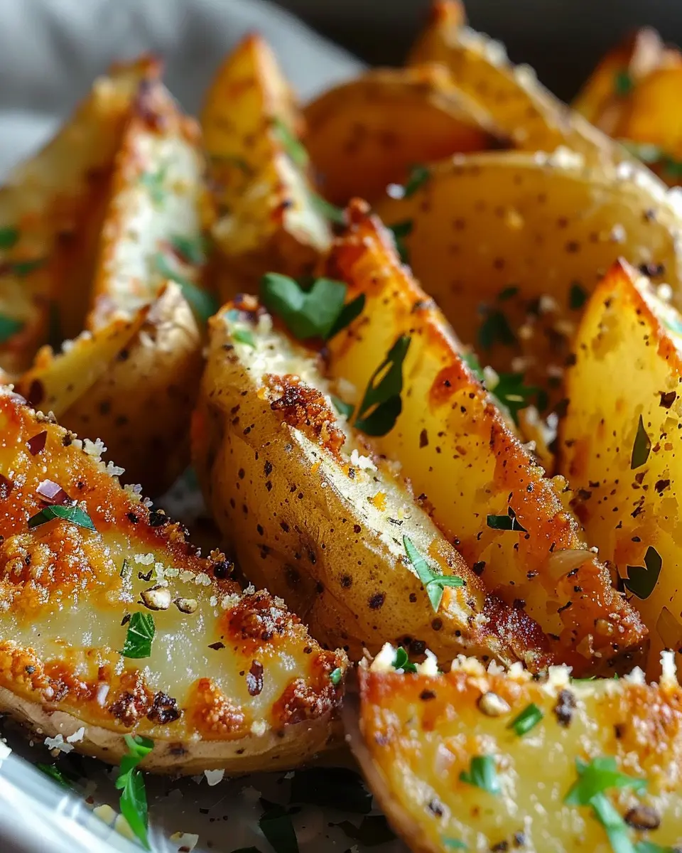 Home » Recipes » Baked Garlic Parmesan Potato Wedges: Irresistibly Easy Delight