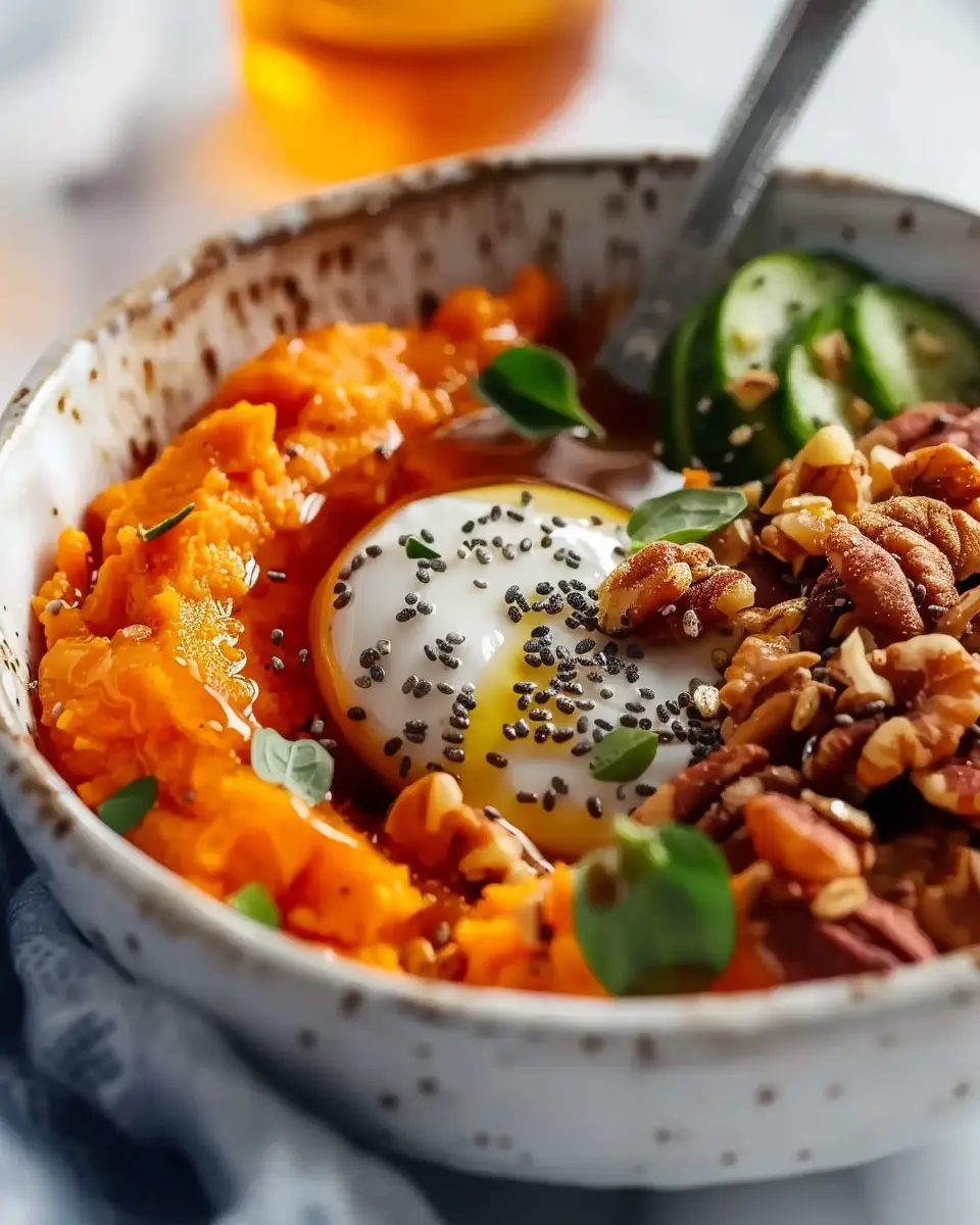 The delicious sweet potato breakfast bowl offers a nourishing start to your day, combining flavor, texture, and nutrition in every bite. Packed with vitamins, minerals, and antioxidants, sweet potatoes are a fantastic choice for maintaining energy levels throughout your busy morning.