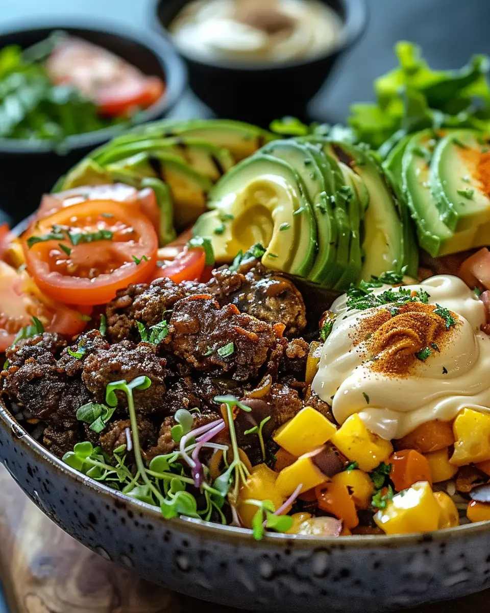 Overall, easy and flavorful burger bowls present a wholesome, balanced option for busy weeknights, ensuring you nourish your body while savoring every bite.