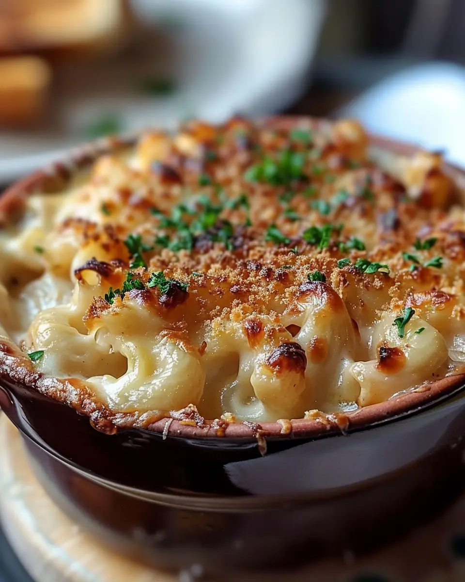 What makes this dish so special? For starters, the fusion of flavors brings a unique twist that’s perfect for cozy nights in or a casual get-together with friends. Imagine digging into a bowl of mac and cheese enriched with caramelized onions, melted Gruyère cheese, and a crispy topping that mimics the satisfying experience of slurping up classic French onion soup. You get the best of both worlds in every delightful spoonful.
