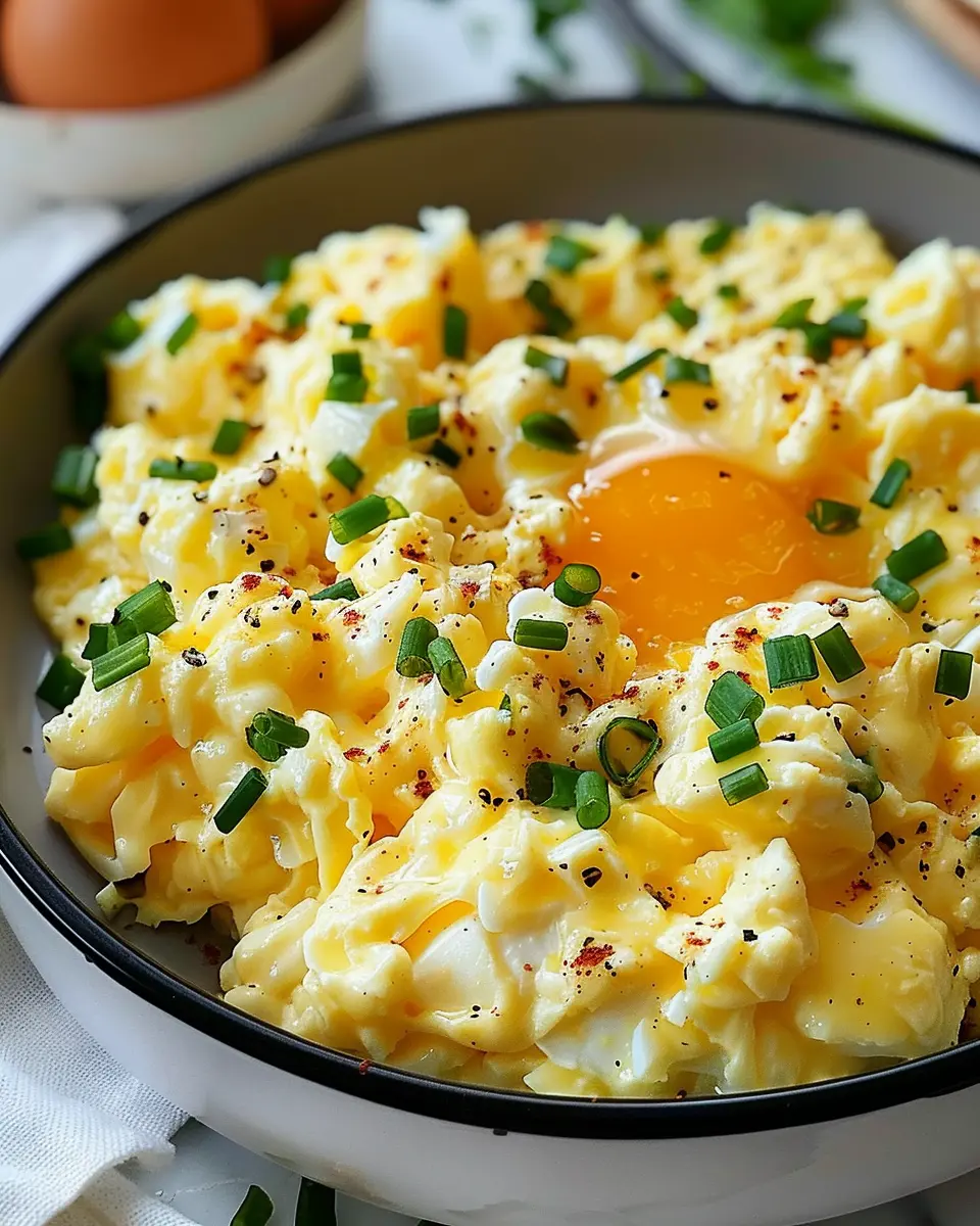 As you embark on this culinary adventure, don’t forget to experiment: add your favorite cheeses, spices, or fresh vegetables. Take it from me; once you try these decadent scrambled eggs, you may never go back to plain ones again!