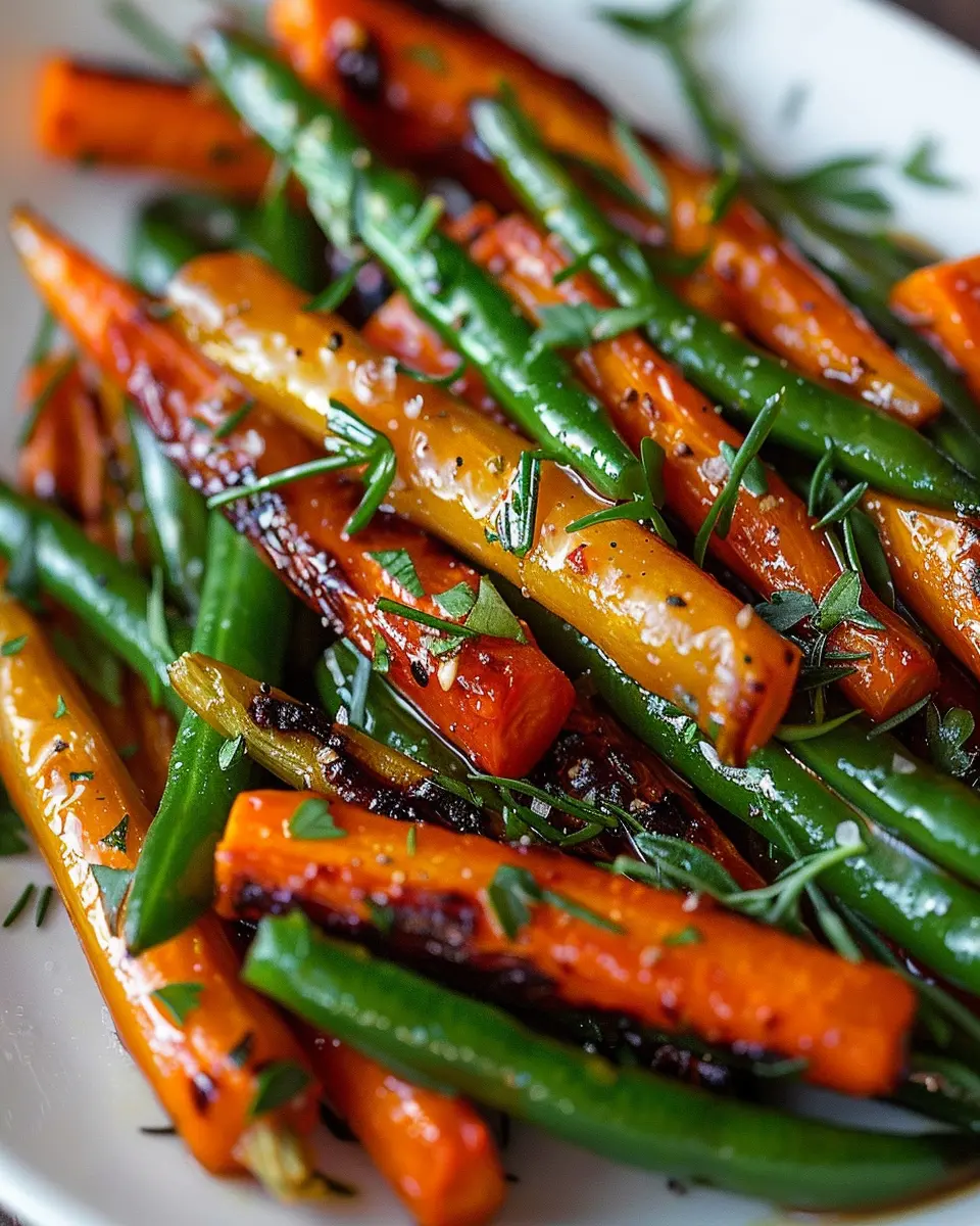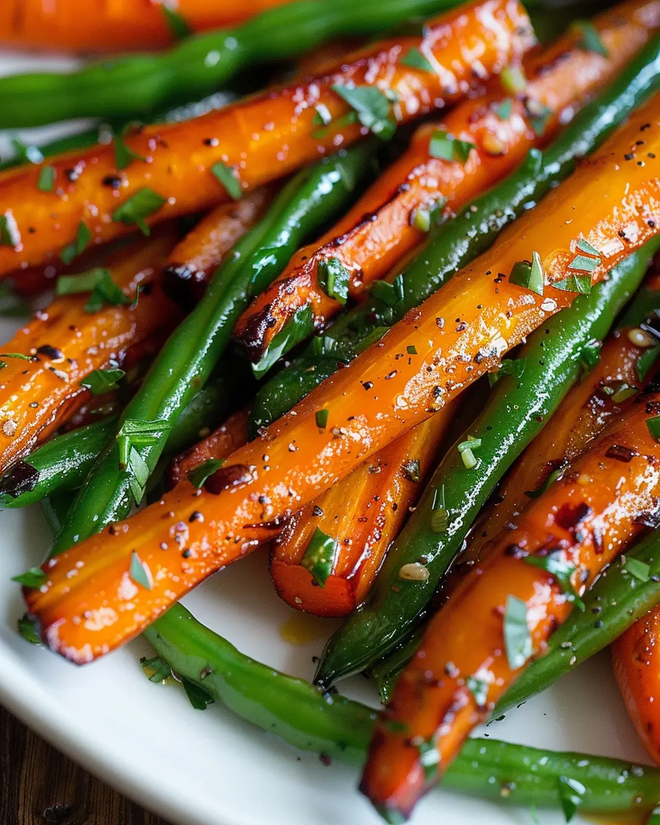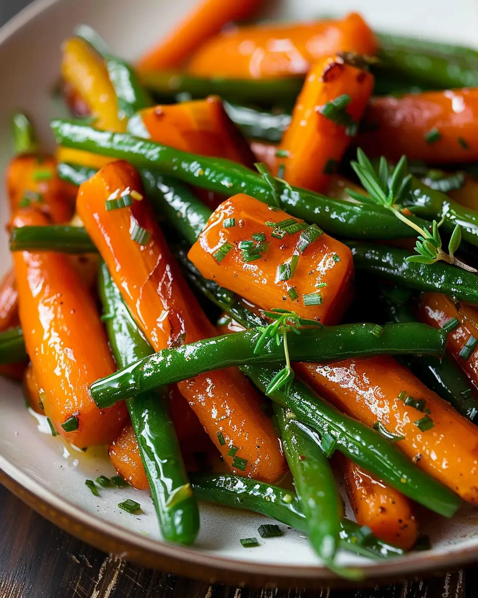 - Layering: Arrange the glazed carrots and green beans in a shallow bowl, allowing the colors to contrast against a white plate.