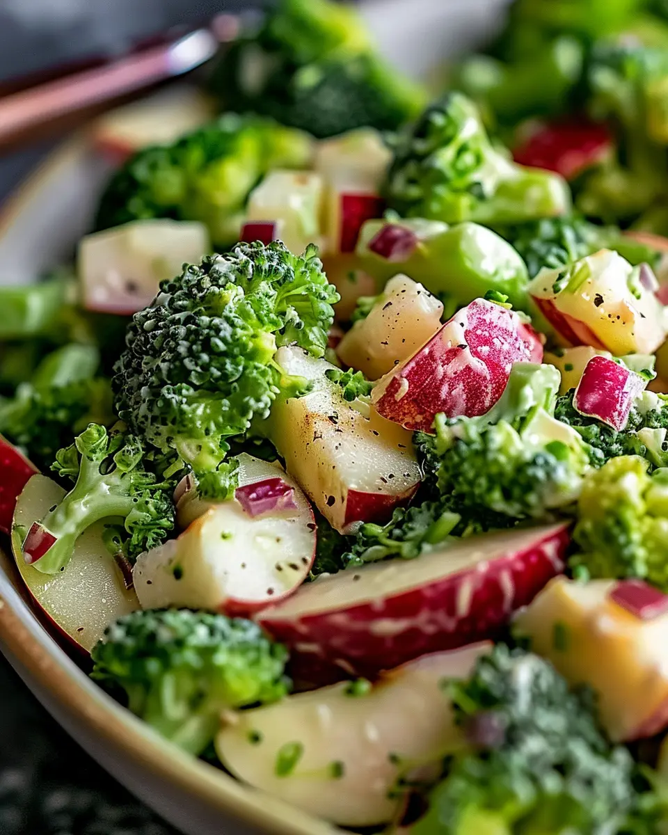 Prep Ahead: Chop the broccoli and apples in advance and store them separately in airtight containers in the refrigerator. This keeps the salad fresh and crunchy longer.