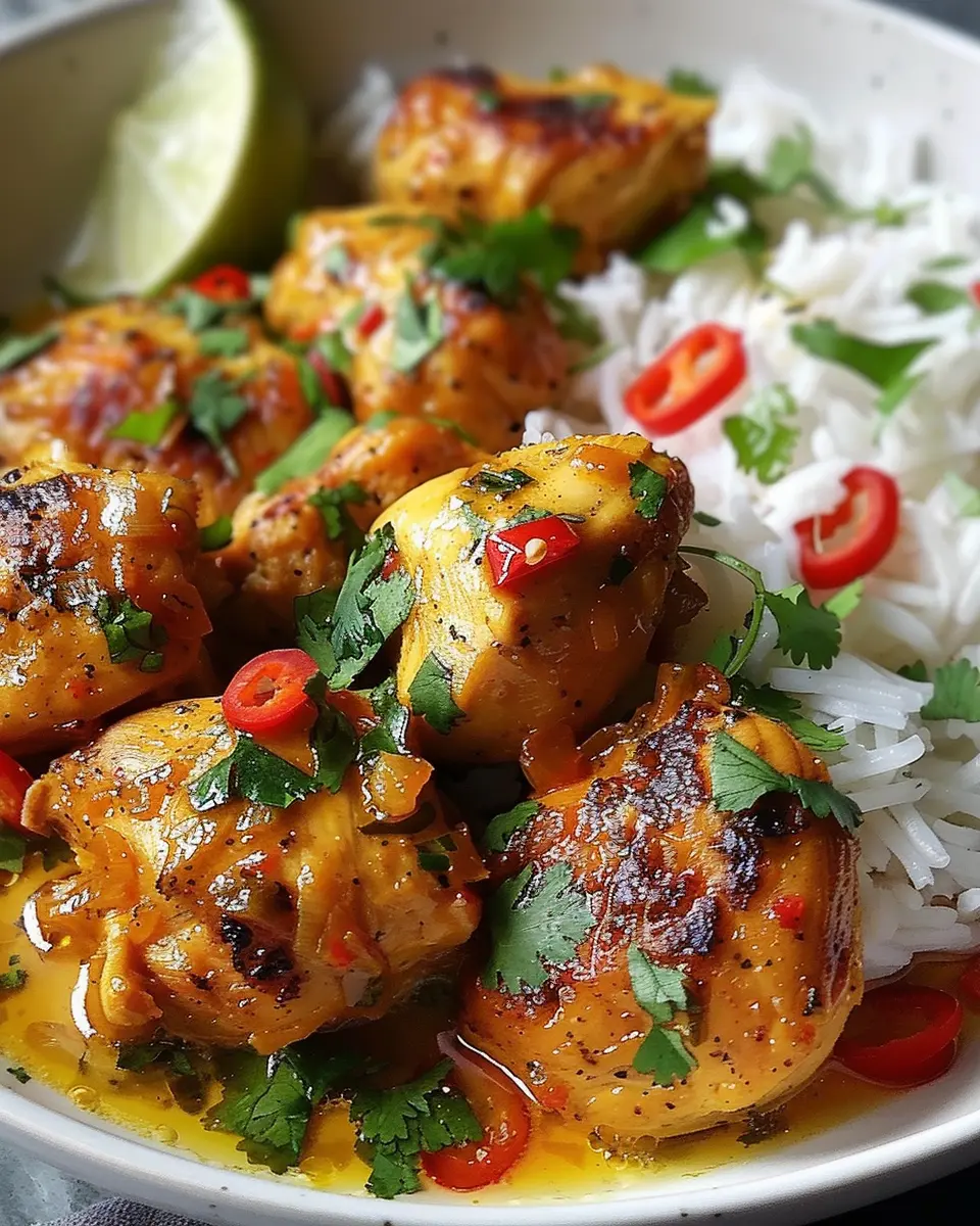 One of the standout features of this dish is its lush coconut sauce, which transforms humble chicken into an exotic feast. Imagine this: tender chicken bathed in a creamy, aromatic coconut milk sauce, accented with notes of lemongrass and lime. It’s a combination that turns your kitchen into a tropical getaway, even if you’re just pulling pots and pans from your cabinets.