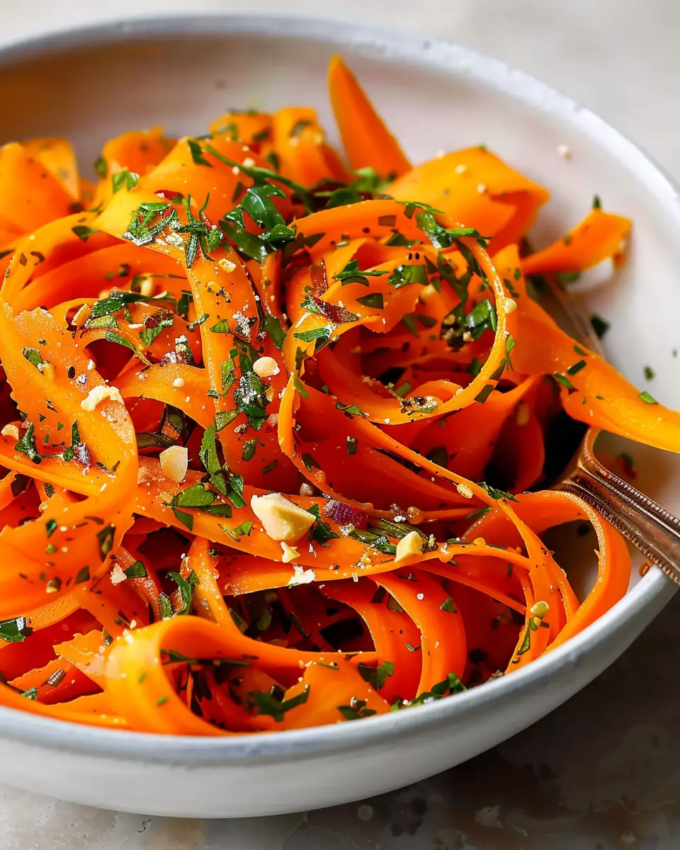 Absolutely! One of the beauties of a raw carrot salad is that it can be prepped in advance. You can slice your carrots and mix in your dressing a day prior to serving. Just keep it stored in an airtight container in the fridge to maintain freshness. The flavors actually deepen overnight, making it taste even better the next day! Just give it a quick toss before serving, and you’re good to go.