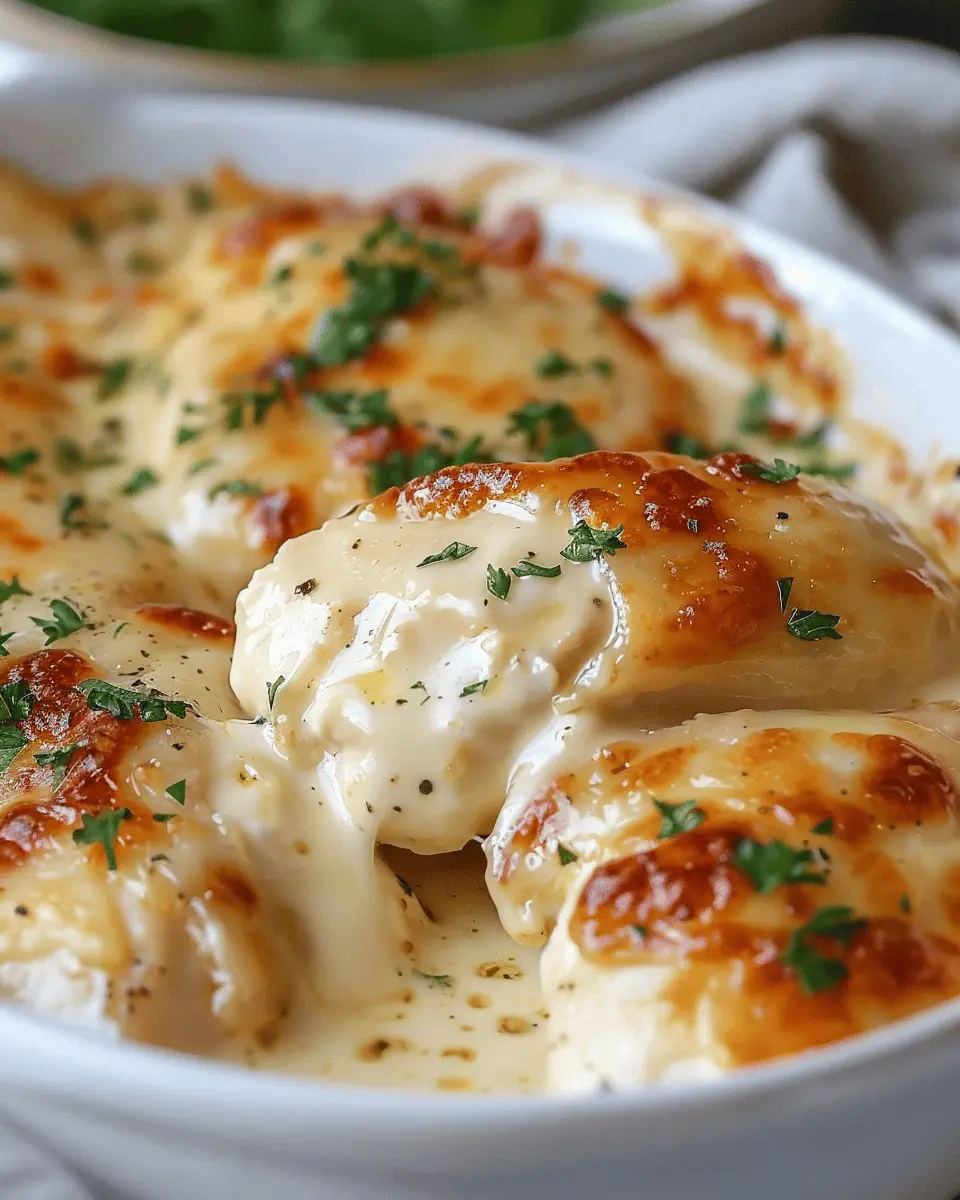 Finally, slide your dish into the preheated oven to bake for about 35-40 minutes. You’ll know it’s done when the chicken reaches an internal temperature of 165°F (74°C) and the cheese is bubbling, golden, and perfectly melted. The aroma that fills your kitchen will have everyone excited for dinner!