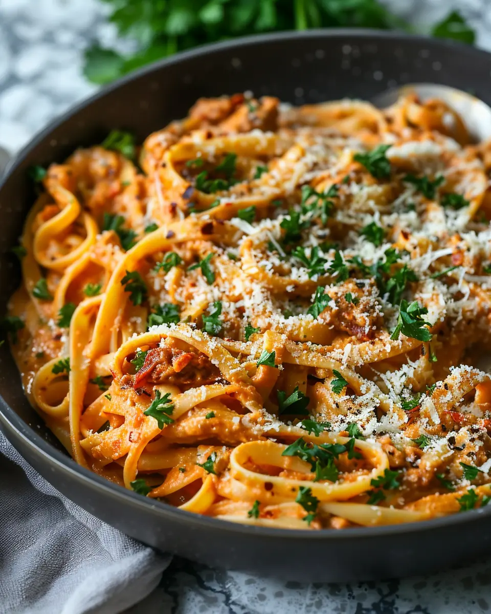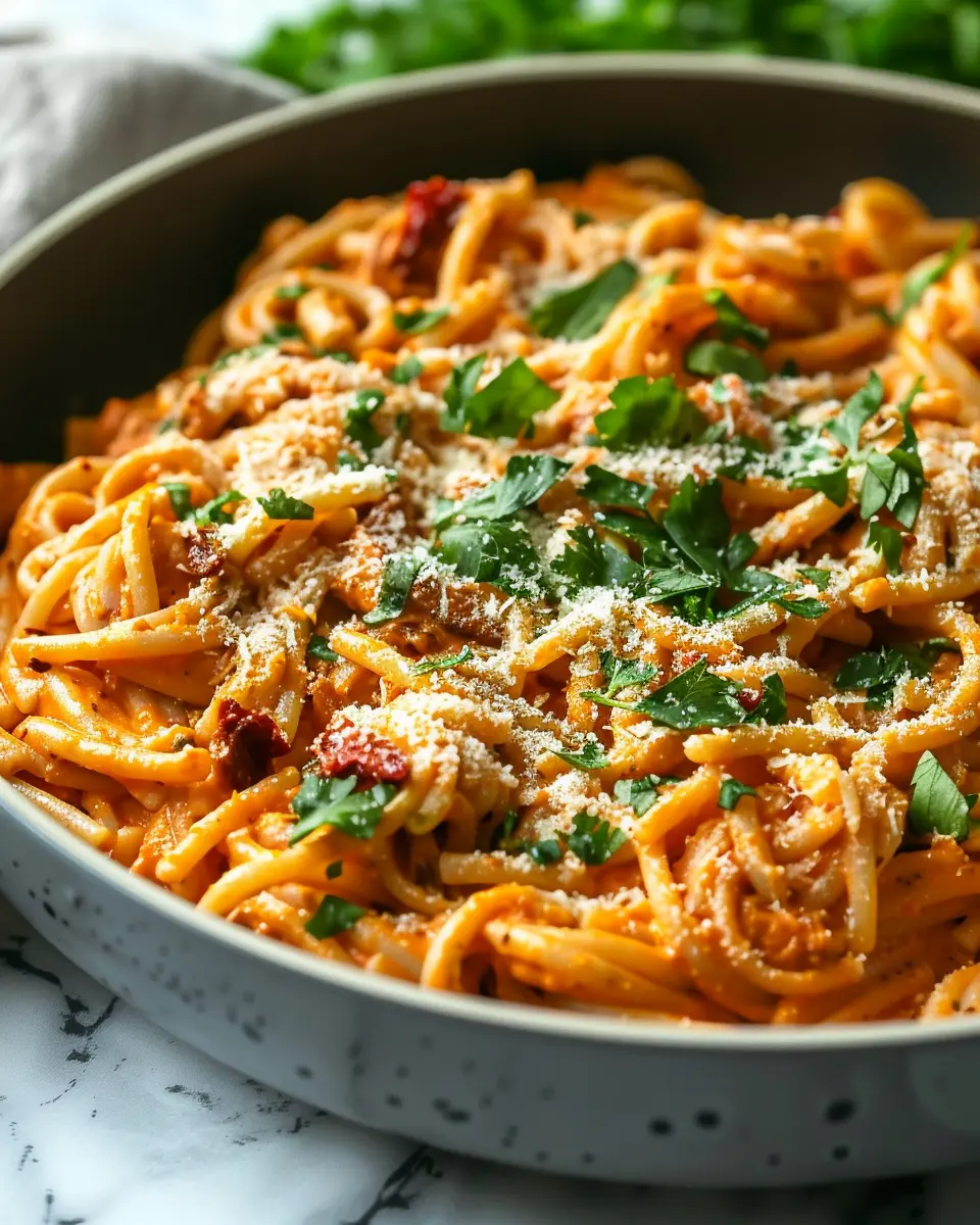 PrintVegan Creamy Sun Dried Tomato Pasta Recipe: A Delightful Indulgence