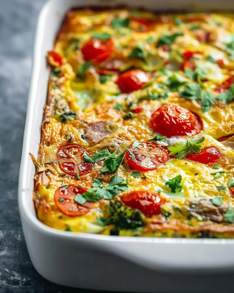 Home » Recipes » Veggie Breakfast Casserole: Easy Delight with Turkey Bacon and Chicken Ham